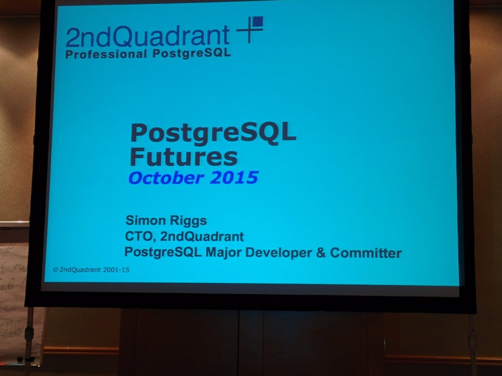 #pgconfeu @simon_riggs about #PostgreSQL futures https://www.postgresql.eu/m/pgconfeu2015/#session?id=1084