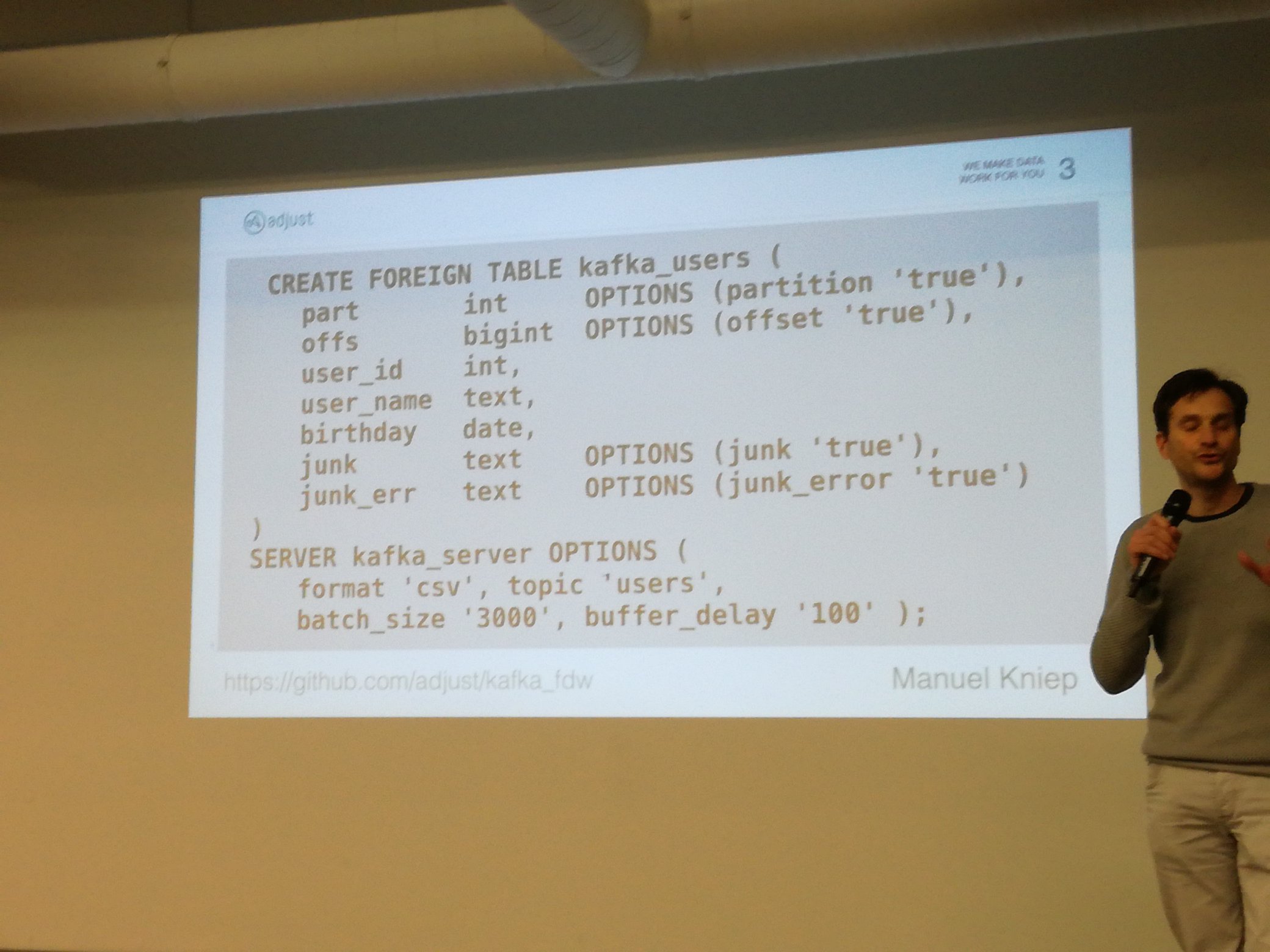 Lighting talk at #Berlin #PostgreSQL Meetup: There’s a #Kafka foreign data wrapper for PostgreSQL