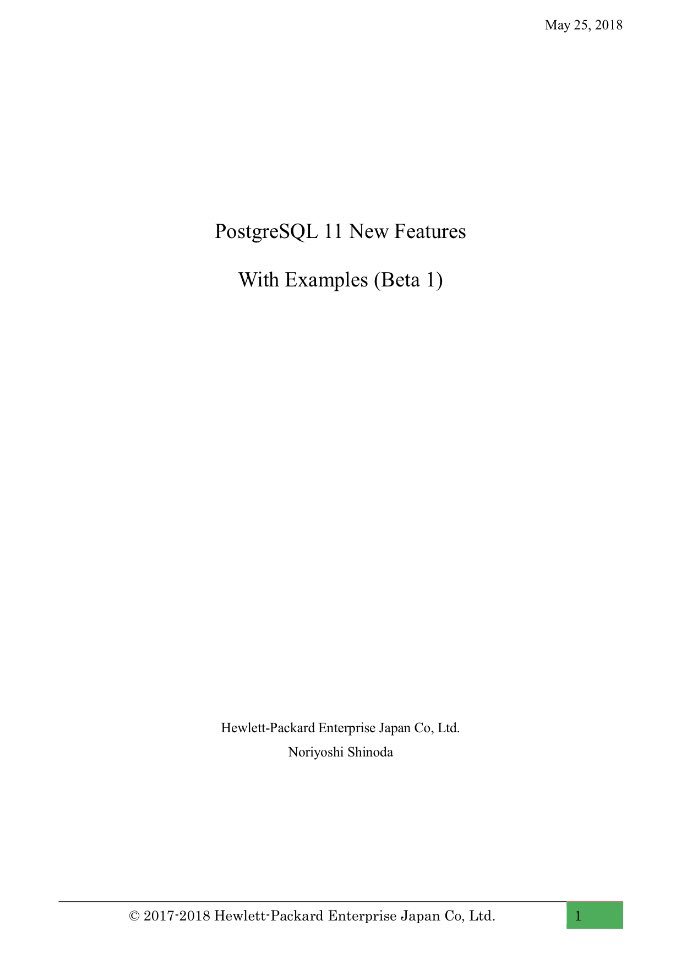 RT @postgresmen: PostgreSQL 11 New Features with Examples (Beta1) — from HP Japan http://h50146.www5.hpe.com/products/software/oe/linux/mainstream/support/lcc/pdf/PostgreSQL_11_New_Features_beta1_en_20180525-1.pdf