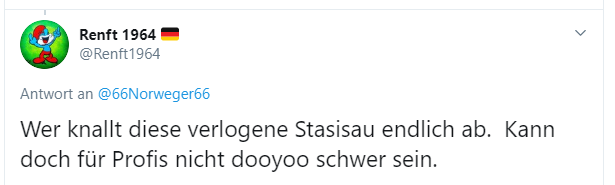 @66Norweger66 Ein kleiner 💩 #FCKNZS Troll, der noch nicht einmal die Rechtschreibung seiner braunen Helden beherrscht. Die größte Gefahr für 🇩🇪+🇪🇺 sind und bleiben Faschisten, sie beweisen immer wieder, daß sie potentielle Mörder sind. #FCKAFD