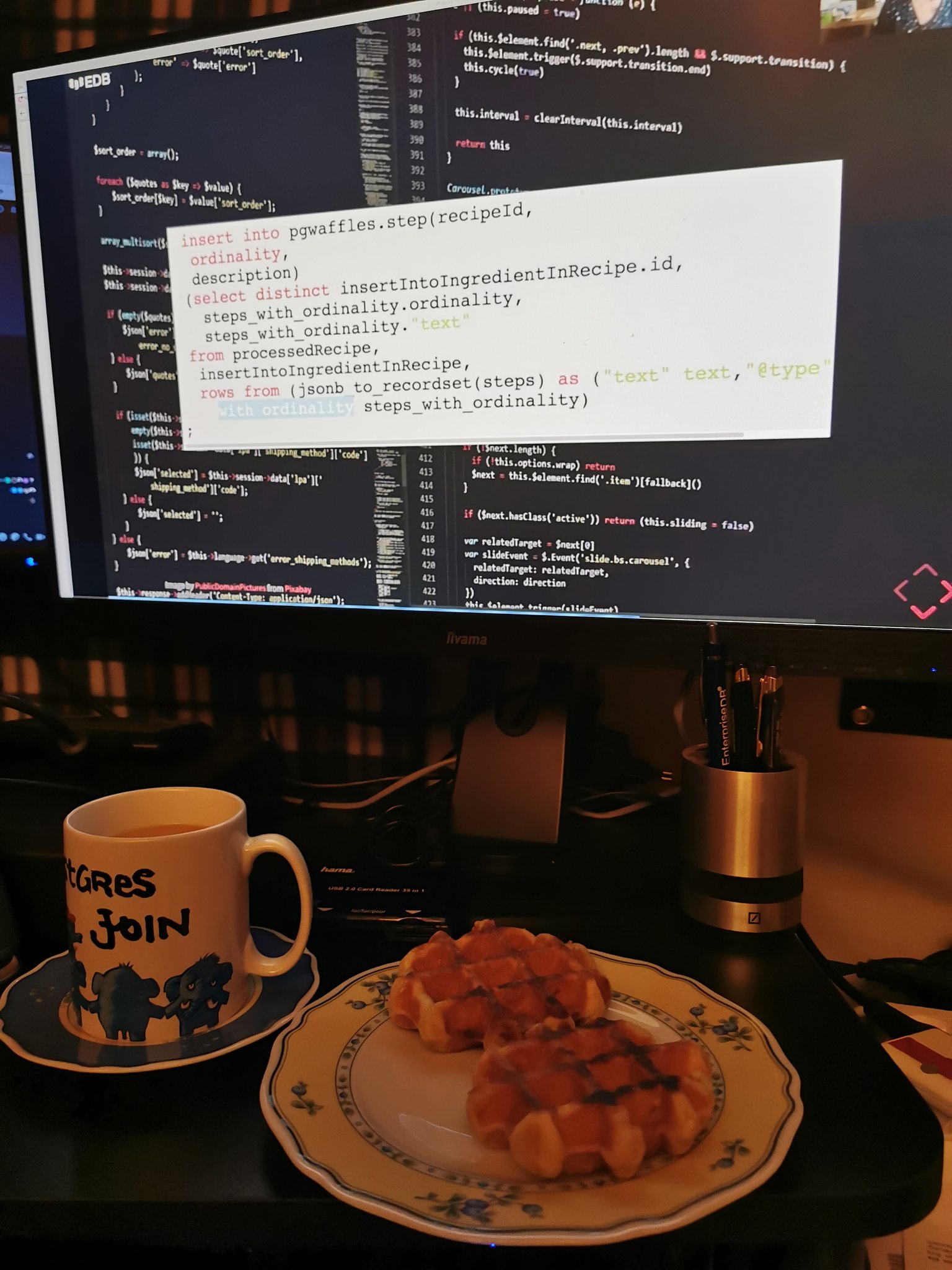 #PostgreSQL waffles at my home while watching @l_avrot at #FOSDEM